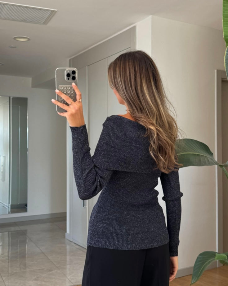 Black Glitter Off-Shoulders