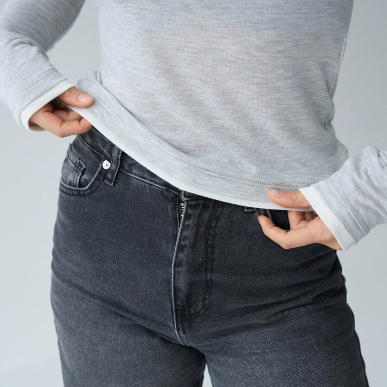 Gray White Lined Cotton Top
